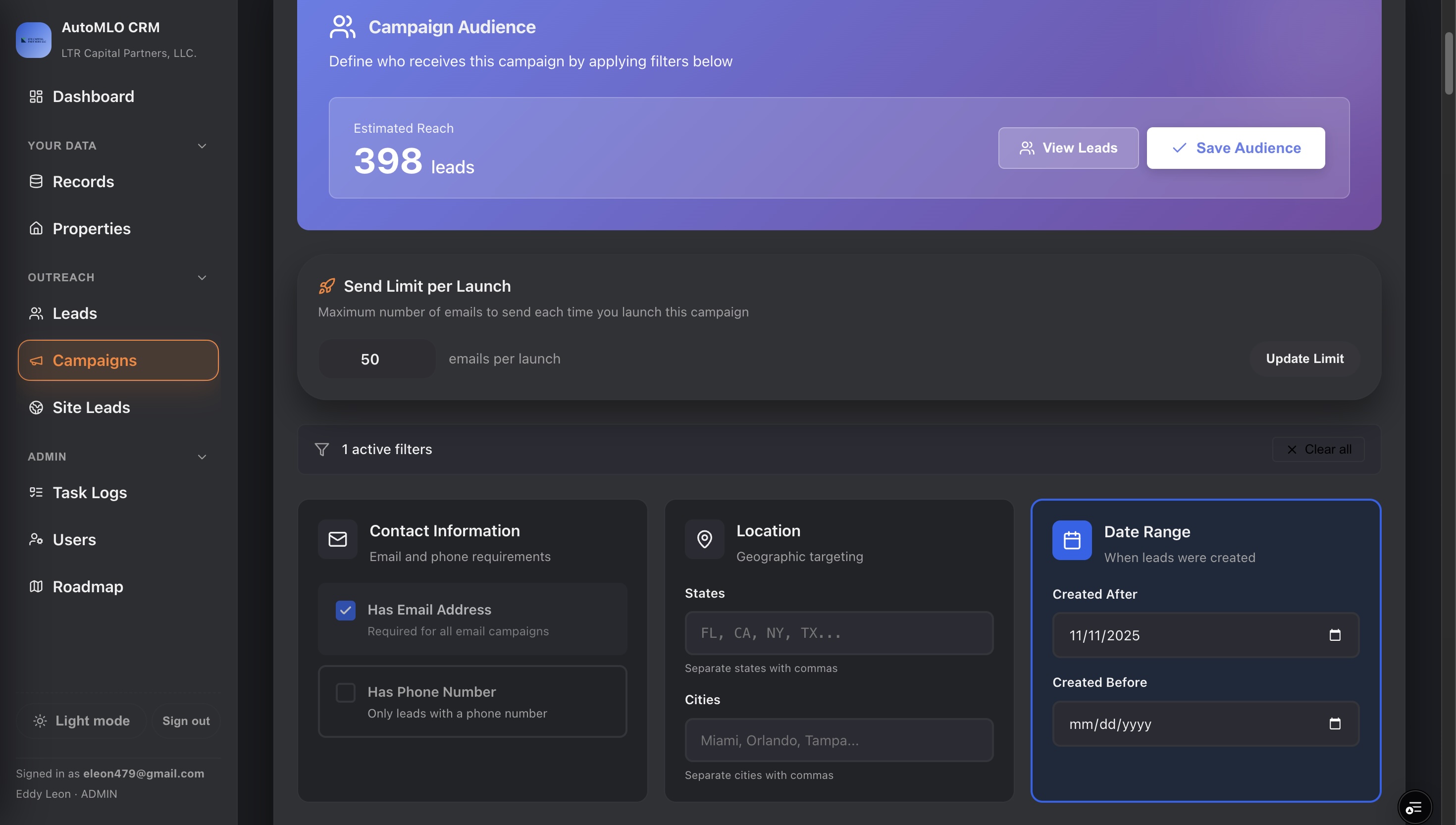 Automatically discover potential leads from county records, public data sources, and third-party enrichment services.